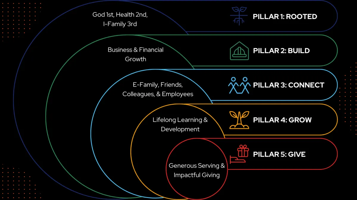 Built on the 5-Pillars framework (Rooted, Build, Connect, Grow, Give), the community provides weekly meetings, accountability partnerships, practical business strategy, & access to a brotherhood of men who share your values & ambitions.